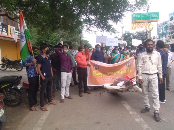 लखनऊ (लाइवभारत24)। राजधानी में आज हिंदू जागरण मंच महानगर के अध्यक्ष अमृतेष कुमार मृत्युंजय की अध्यक्षता में हिंदू जागरण मंच के कार्यकर्ताओ ने भारत चीन के बीच हुई झडप में शहीद हुये भारतीय जवानों की याद में चीन के प्रेसीडेंट शी जिनपिंग का पुतला फूंका तथा चाइना के झंडे का दहन कर लोगों से चीनी सामान का बहिष्कार करने की अपील की।